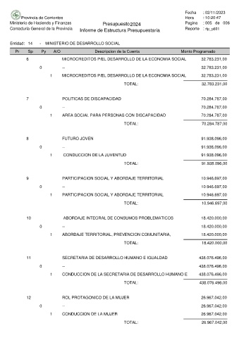 Ministerio de Hacienda y Finanzas Presupuesto 2024 Pagina : 005 de 006