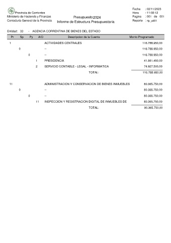 Entidad: 33 - AGENCIA CORRENTINA DE BIENES DEL ESTADO