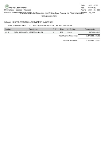 12118 TASA REGULACION, INSPECCION E.P.R.E 0 EFE 113111 2.275.685.125,00