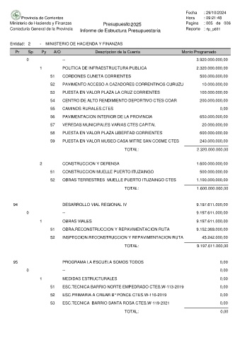 Ministerio de Hacienda y Finanzas Presupuesto 2025 Pagina : 005 de 006