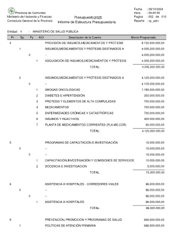 Ministerio de Hacienda y Finanzas Presupuesto 2025 Pagina : 002 de 010