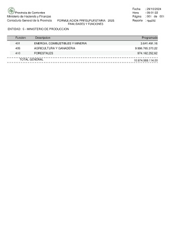 Contaduria General de la Provincia FORMULACION PRESUPUESTARIA 2025 Reporte : rfpp202