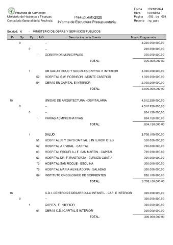 Ministerio de Hacienda y Finanzas Presupuesto 2025 Pagina : 003 de 004