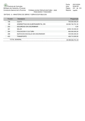 Contaduria General de la Provincia FORMULACION PRESUPUESTARIA 2025 Reporte : rfpp202
