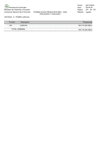 Contaduria General de la Provincia FORMULACION PRESUPUESTARIA 2025 Reporte : rfpp202