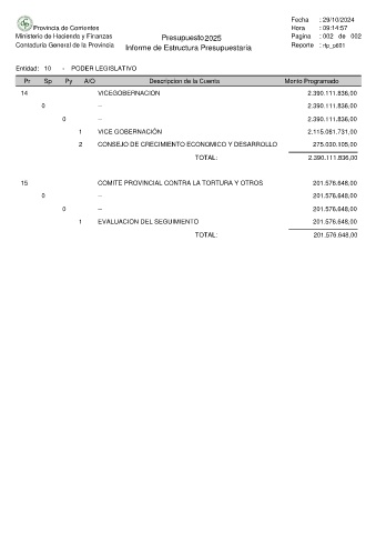 Ministerio de Hacienda y Finanzas Presupuesto 2025 Pagina : 002 de 002