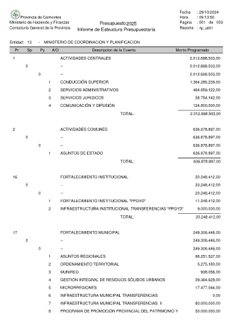 Ministerio de Hacienda y Finanzas Presupuesto 2025 Pagina : 001 de 003
