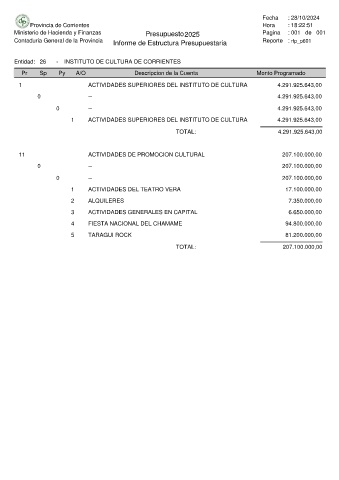 Entidad: 26 - INSTITUTO DE CULTURA DE CORRIENTES