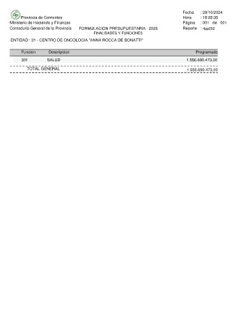 Contaduria General de la Provincia FORMULACION PRESUPUESTARIA 2025 Reporte : rfpp202
