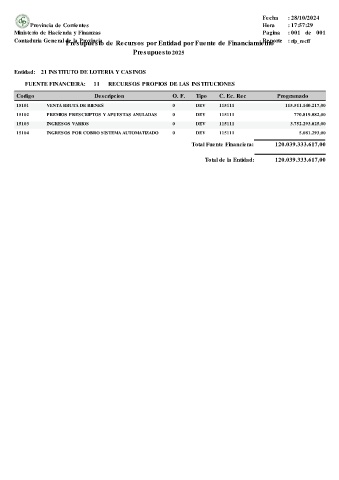 Entidad: 21 INSTITUTO DE LOTERIA Y CASINOS