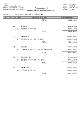 Entidad: 27 - INSTITUTO DE VIVIENDA DE CORRIENTES