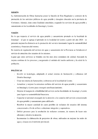 Corrientes. Además, tiene como finalidad consolidar y expandir los servicios de agua potable y