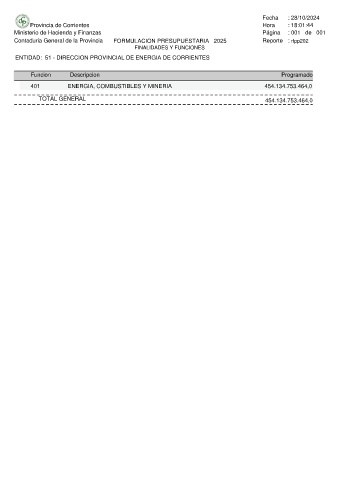 Contaduria General de la Provincia FORMULACION PRESUPUESTARIA 2025 Reporte : rfpp202