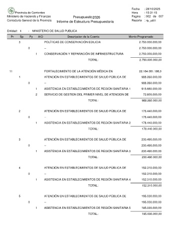 Ministerio de Hacienda y Finanzas Presupuesto 2026 Pagina : 002 de 007
