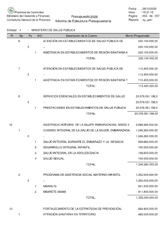 Ministerio de Hacienda y Finanzas Presupuesto 2026 Pagina : 003 de 007