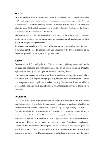 fortaleciendo las funciones propias de las Cámaras: legislar, representar y controlar.
