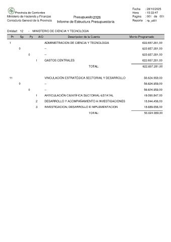 Entidad: 12 - MINISTERIO DE CIENCIA Y TECNOLOGIA