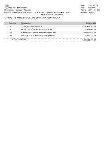 Contaduria General de la Provincia FORMULACION PRESUPUESTARIA 2026 Reporte : rfpp202