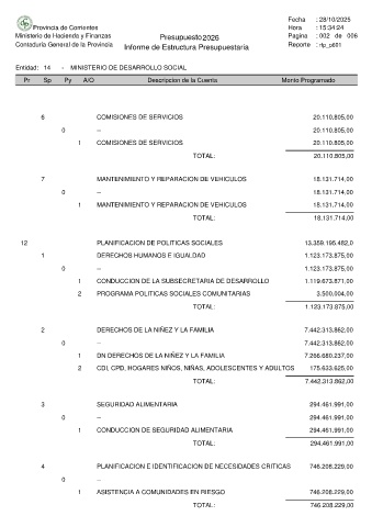Ministerio de Hacienda y Finanzas Presupuesto 2026 Pagina : 002 de 006