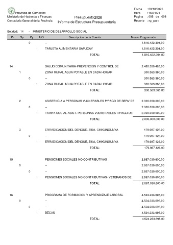 Ministerio de Hacienda y Finanzas Presupuesto 2026 Pagina : 005 de 006