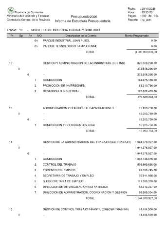 Entidad: 18 - MINISTERIO DE INDUSTRIA,TRABAJO Y COMERCIO