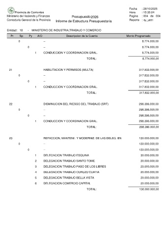 Entidad: 18 - MINISTERIO DE INDUSTRIA,TRABAJO Y COMERCIO