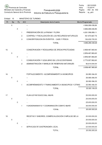 Entidad: 19 - MINISTERIO DE TURISMO