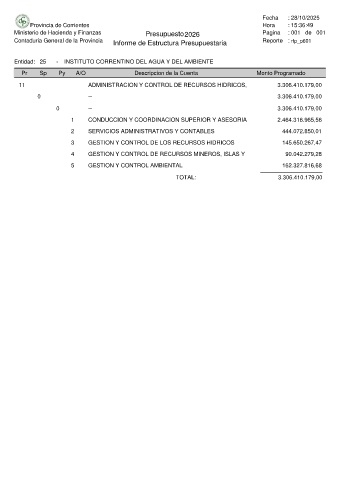Entidad: 25 - INSTITUTO CORRENTINO DEL AGUA Y DEL AMBIENTE