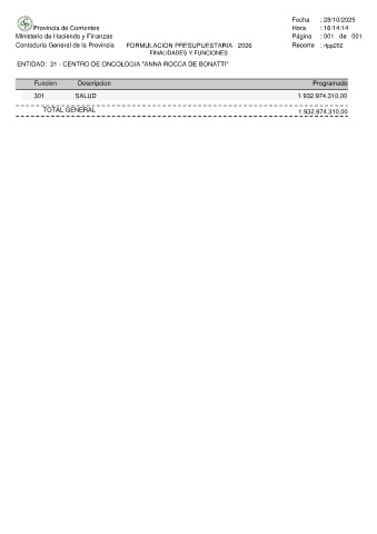 Contaduria General de la Provincia FORMULACION PRESUPUESTARIA 2026 Reporte : rfpp202