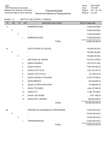 Entidad: 21 - INSTITUTO DE LOTERIA Y CASINOS