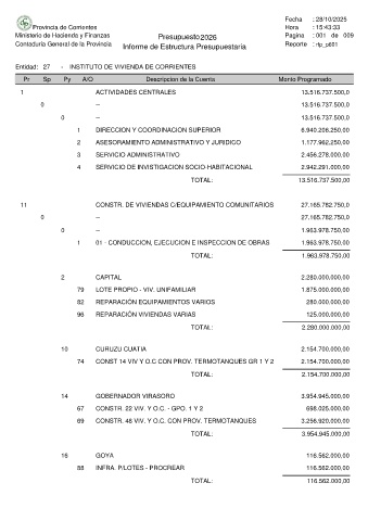 Entidad: 27 - INSTITUTO DE VIVIENDA DE CORRIENTES