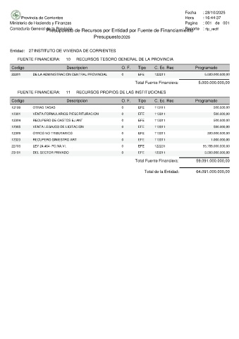 Entidad: 27 INSTITUTO DE VIVIENDA DE CORRIENTES