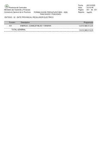 Contaduria General de la Provincia FORMULACION PRESUPUESTARIA 2026 Reporte : rfpp202