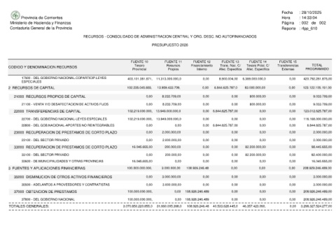 Provincia de Corrientes Ministerio de Hacienda y Finanzas Contaduria General de la Provincia CODIGO Y DENOMINACION RECURSOS 17900 - DEL GOBIERNO NACIONAL.COPARTICIP.LEYES ESPECIALES 2 RECURSOS DE CAPITAL 21000 RECURSOS PROPIOS DE CAPITAL 21100 - VENTA Y/O DESAFECTACION DE ACTIVOS FIJOS 22000 TRANSFERENCIAS DE CAPITAL 22700 - DEL GOBIERNO NACIONAL-LEYES ESPECIALES 22800 - DEL GOB.NACIONAL-APORTES NO REINTEGRABLES 23000 RECUPERACION DE PRESTAMOS DE CORTO PL