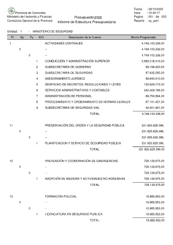 Entidad: 1 - MINISTERIO DE SEGURIDAD