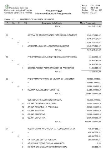 Ministerio de Hacienda y Finanzas Presupuesto 2026 Pagina : 003 de 006