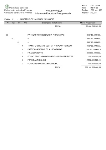 Ministerio de Hacienda y Finanzas Presupuesto 2026 Pagina : 006 de 006