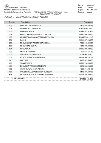 Contaduria General de la Provincia FORMULACION PRESUPUESTARIA 2026 Reporte : rfpp202