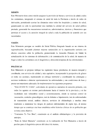Este Ministerio tiene como misión asegurar la provisión de bienes y servicios de salud a todos
