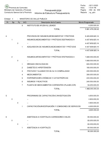 Ministerio de Hacienda y Finanzas Presupuesto 2024 Pagina : 002 de 009