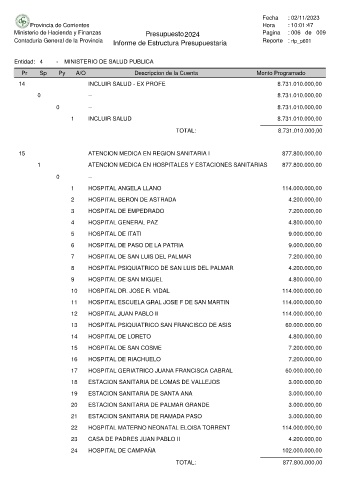 Ministerio de Hacienda y Finanzas Presupuesto 2024 Pagina : 006 de 009