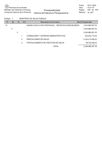 Ministerio de Hacienda y Finanzas Presupuesto 2024 Pagina : 009 de 009