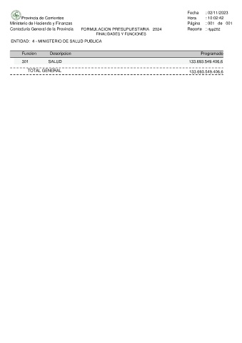 Contaduria General de la Provincia FORMULACION PRESUPUESTARIA 2024 Reporte : rfpp202