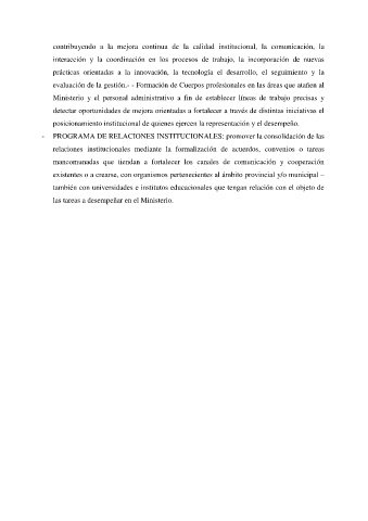 - PROGRAMA DE RELACIONES INSTITUCIONALES: promover la consolidación de las