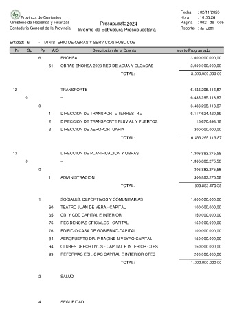 Ministerio de Hacienda y Finanzas Presupuesto 2024 Pagina : 002 de 005