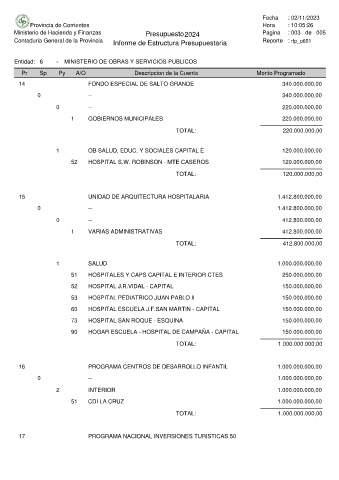 Ministerio de Hacienda y Finanzas Presupuesto 2024 Pagina : 003 de 005