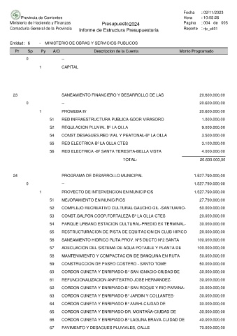 Ministerio de Hacienda y Finanzas Presupuesto 2024 Pagina : 004 de 005
