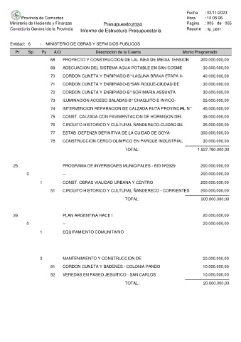 Ministerio de Hacienda y Finanzas Presupuesto 2024 Pagina : 005 de 005