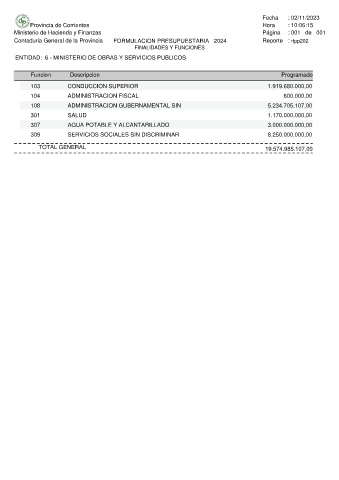 Contaduria General de la Provincia FORMULACION PRESUPUESTARIA 2024 Reporte : rfpp202