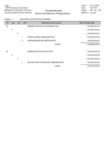 Informe de Estructura Presupuestaria